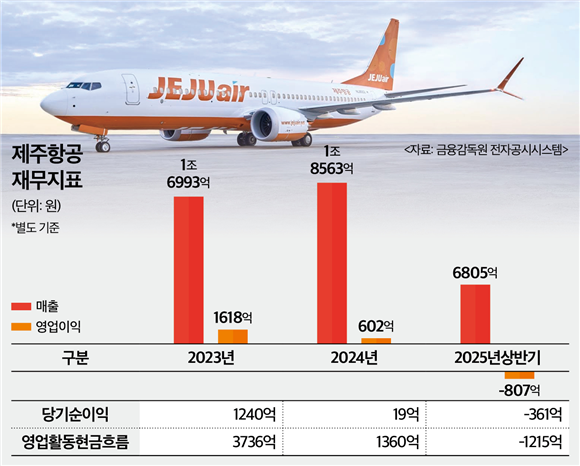 이에 제주항공은 올해 상반기 영업손실로 전환했다. 올해 상반기 제주항공은 별도기준 매출 6805억원, 영업손실 807억원을 거뒀다. 지난해 회사의 매출과 영업이익은 각각 9671억원, 656억원이었다. 동시에 가용할 수 있는 현금도 급감했다. 회사의 영업현금흐름은 지난해 상반기 1107억원 유입에서 올해 상반기 1215억원 유출로 전환했다. 환율 상승, 외화 부채 증가에 따라 원화로 환산된 지출 액면가가 더 커진 영향이다.
