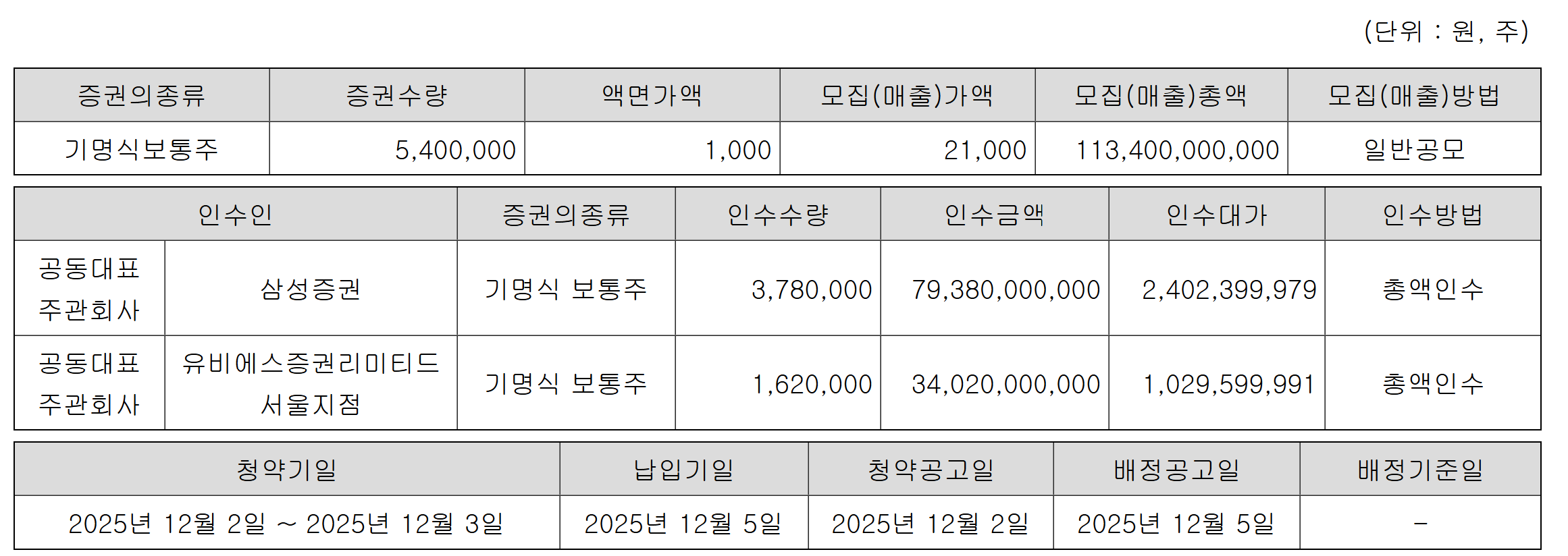 삼성증권(016360)과 유비에스증권리미티드 서울지점, 발행회사인 세마파이브가 협의해 최종 결정할 예정이다. 기관투자자와 일반청약자의 청약은 오는 12월2일부터 3일까지 양일간 진행된다.