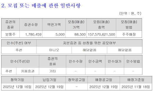 유상증자 방식은 주주배정이다. 구주주에 대한 청약이 진행되고 그 결과 발생하는 단수주나 실권주에 대해서는 미발행 처리한다는 방침이다.