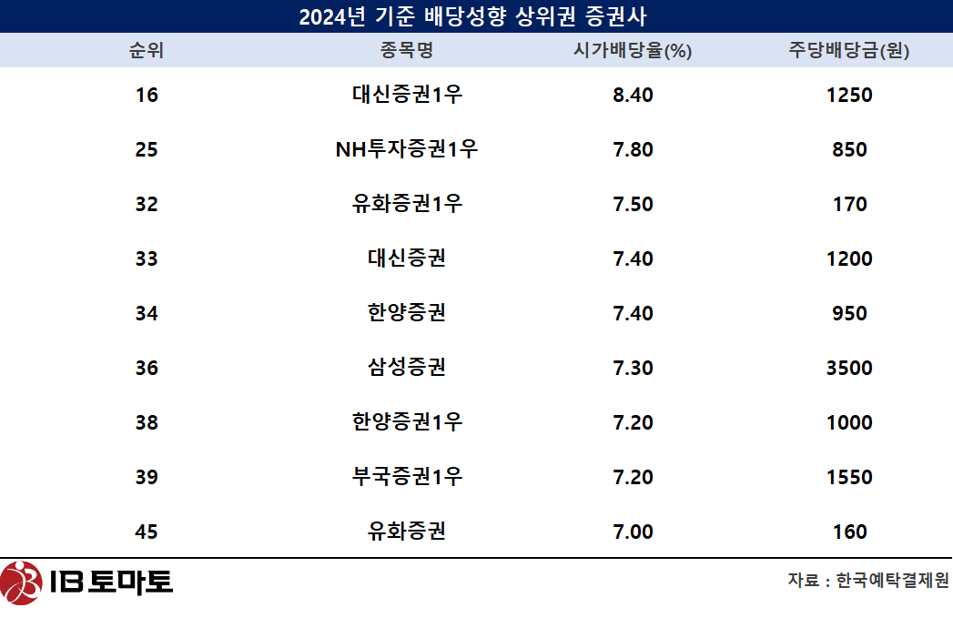 배당성향 상위 15개 증권사 (사진=신영증권)
