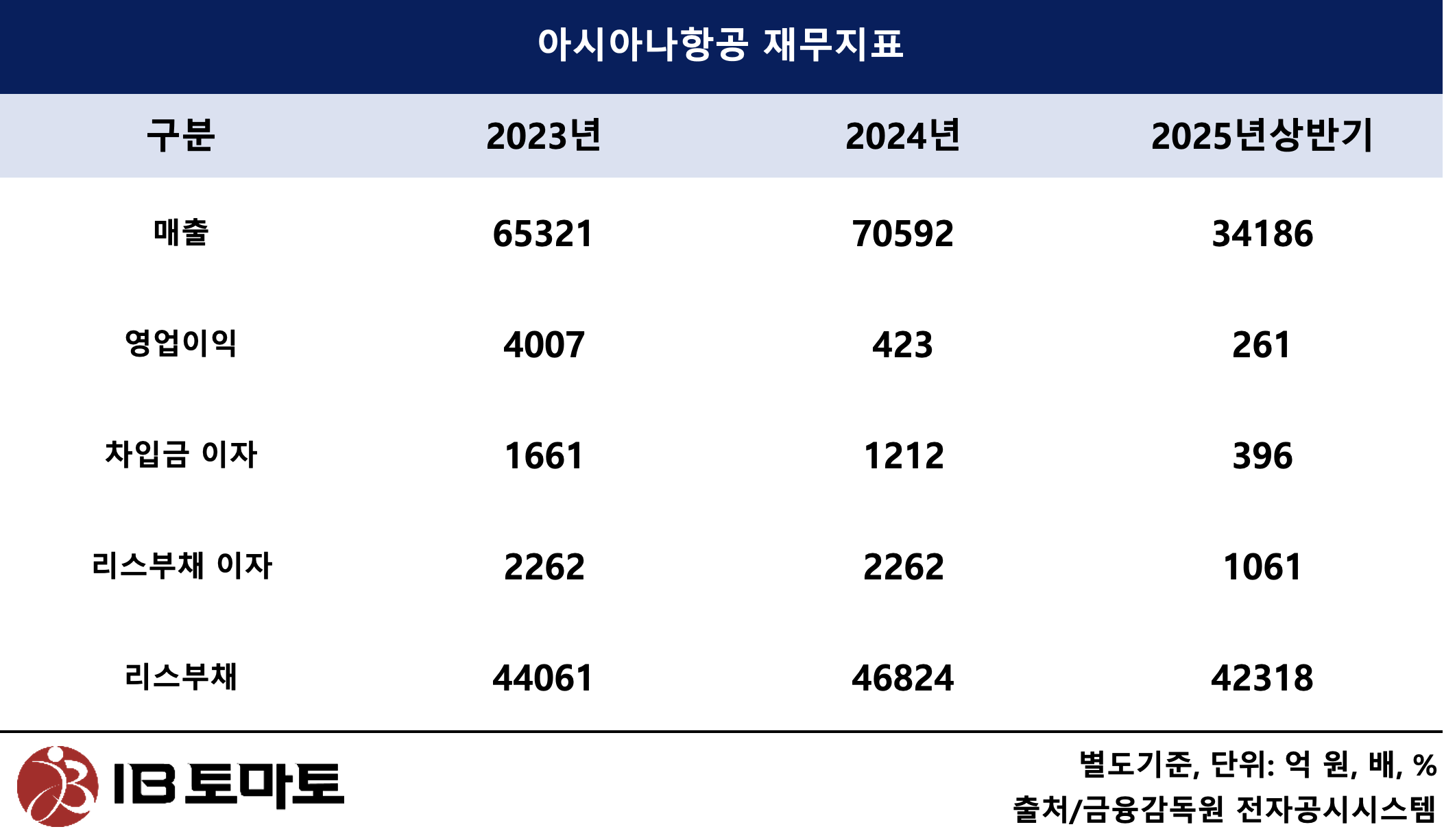 다만, 리스부채에서 발생하는 이자비용은 감소 폭이 작았다. 올해 상반기 아시아나항공이 지출한 리스부채 이자는 1061억원으로 직전연도 같은 기간(1158억원) 대비 8.4% 감소하는 데 그쳤다.
