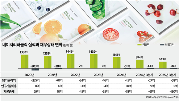 [IB토마토 박예진 기자] 1세대 로드숍 브랜드인 네이처리퍼블릭이 기업으로서 존속능력이 시험대에 올랐다. 지난 2022년 완전자본잠식으로 전환된 이후에도 외형 축소와 재무건전성 악화가 지속되고 있어서다. 광고선전비 뿐만 아니라 연구비용까지 줄이면서 브랜드 경쟁력 저하 우려도 제기된다.