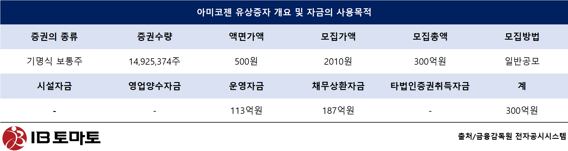 한편 아미코젠은 오는 9일 주주간담회를 열고 이번 유상증자 추진 배경과 목적, 세부 일정 및 절차를 안내한 뒤 의견을 청취할 예정이다.