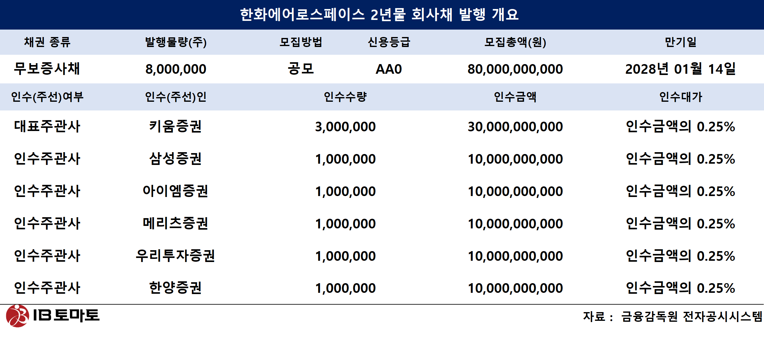 2년물 500억원 발행은 키움증권이 단독으로 대표주관한다. 키움증권은 지난해 1월 한화에어로스페이스의 회사채 발행에서 3년물 발행에서 대표 주관에 참여한 바 있지만 단독은 처음이다.