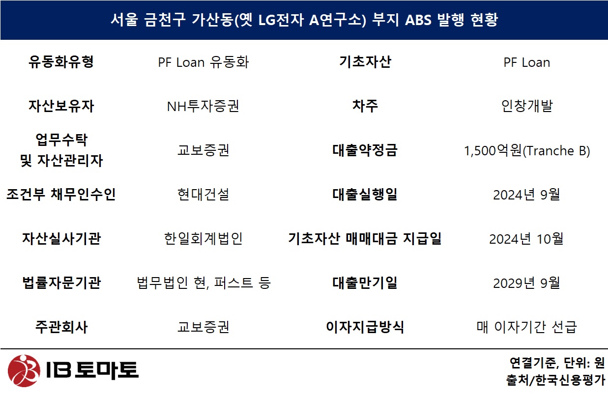 후순위 구조는 대출 실행 이후 한 달 만에 유동화 단계로 이동하며 다시 재편됐다. 트랜치B(2500억원) 중 1500억원이 ABS(자산유동화증권)로 유동화된 것이다. NH투자증권이 인창개발에 실행한 후순위 대출채권을 SPC(더블케이가산제일차유동화전문)가 넘겨받고, 이를 기초로 ABS 1500억원을 발행한 방식이다. 이때 현대건설은 SPC에 '자금보충·조건부 채무인수 약정'을 제공했다.