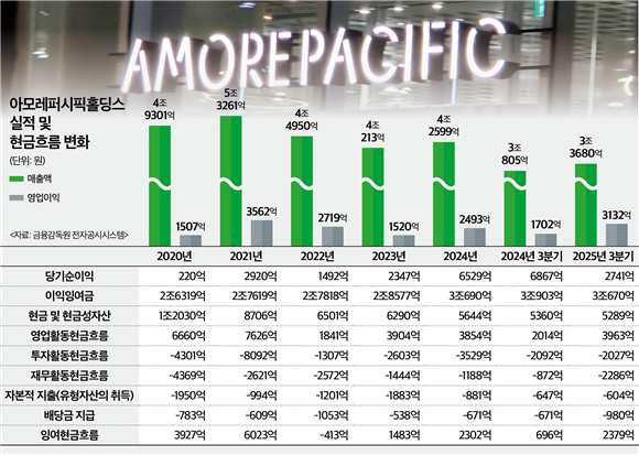 영업이익률 9% 돌파했지만 현금 및 현금성 자산 감소2000억원 규모 투자활동현금흐름과 배당금 확대 영향서경배 회장 등 지분 60%…현금 오류로 정정공시 예정