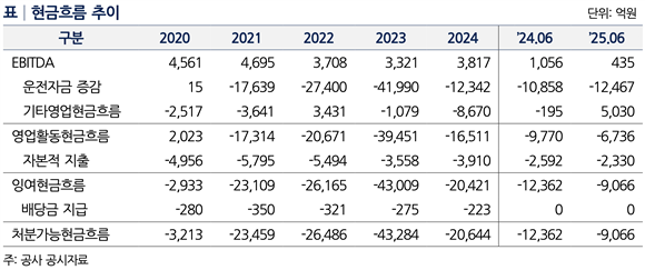 이에 공사는 경기도 지역개발기금으로부터의 융자, 공사채 발행 등으로 자금을 충당했다. 공사의 총차입금은 2024년 말 9조4529억원에서 지난해 상반기 10조8816억원으로 늘었다. 차입금의존도는 같은 시기 46.9%에서 49.3%로 2.4%포인트 높아졌다.