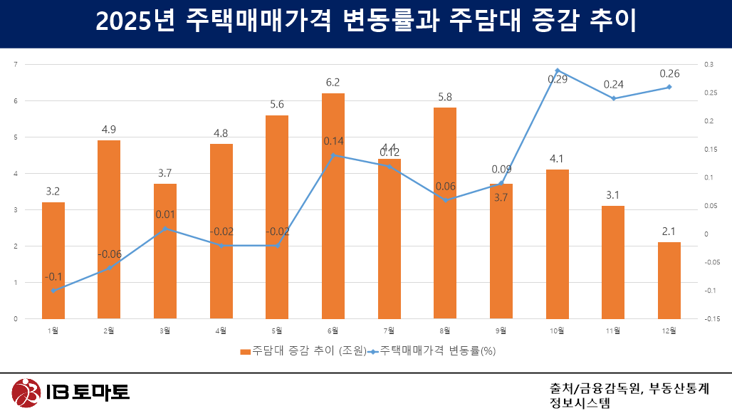 다만 금융권에서는 인과관계가 잘못된 것 아니냐는 목소리도 다수다. 은행이 주택담보대출을 많이 해서 주택매매가격이 오르는 것이 아니라, 주택매매가격이 오르기 때문에 주택담보대출이 늘어난다는 주장이다. 특히 2024년까지와는 달리 지난해에는 자기자금을 활용한 주택 매입이 늘어나 주택 가격은 되레 상승했다. 특히 4분기 주담대 규모와 주택가격변동률의 관계에서도 변화가 감지됐다. 지난해 12월 주택담보대출 규모는 2조1000억원 늘어 전월 대비 증가 규모가 줄었으나, 주택매매가격변동률은 0.24%로 전월 대비 0.02%p 올랐다.