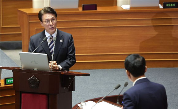 김민석 국무총리가 17일 경제분야 대정부 질문이 열린 국회 본회의장에서 발언하고 있다. (사진=연합뉴스)