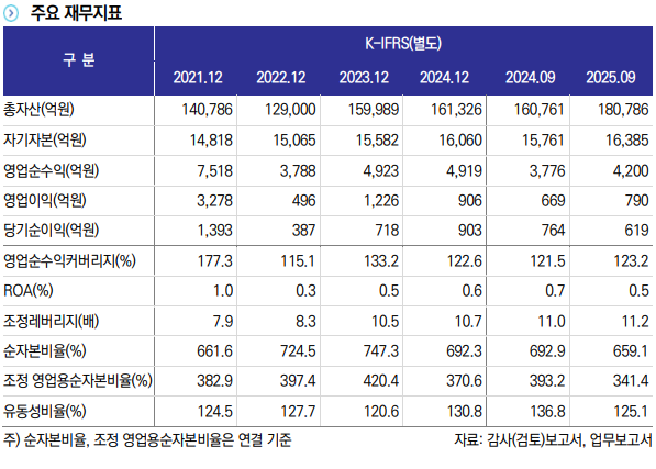 지난 9월 자기자본 대비 위험노출액(익스포저) 비율은 129.0%로 중소형사 평균 147.5% 대비 낮은 수준이다. 같은 기간 우발부채 총액도 7089억원으로 자본 대비 우발부채 비중은 43.3%에 불과하다. 자산 위험도 측면에서도 평균 담보인정비율(LTV)이 55% 수준으로 대체로 담보가치가 양호하고, 중후순위 비중이 32%로 질적 위험은 낮다.