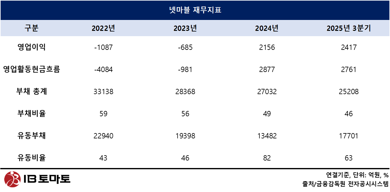 넷마블(251270)이 폭넓은 게임 포트폴리오를 바탕으로 최근 실적을 개선했지만 유동부채 규모가 보유 현금을 크게 웃돌아 만기 관리와 리파이낸싱 등 재무전략의 중요성이 커지고 있다. 넷마블은 보유한