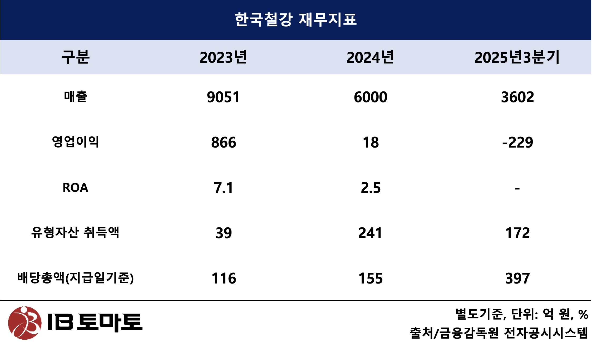 한국철강은 지난해 마련한 유동성 중 절반 이상을 주주환원에 할애했다. 지난해 3분기 회사는 영업활동현금흐름 51억원, 투자자산과 보유 설비 일부를 처분해 715억원을 확보했다. 이 중 397억원(24년 결산배당과 25년 중간배당 합계)은 배당, 28억원은 자사주 취득에 사용했다. 유형자산 투자에 들어간 금액은 172억원에 그쳤다.