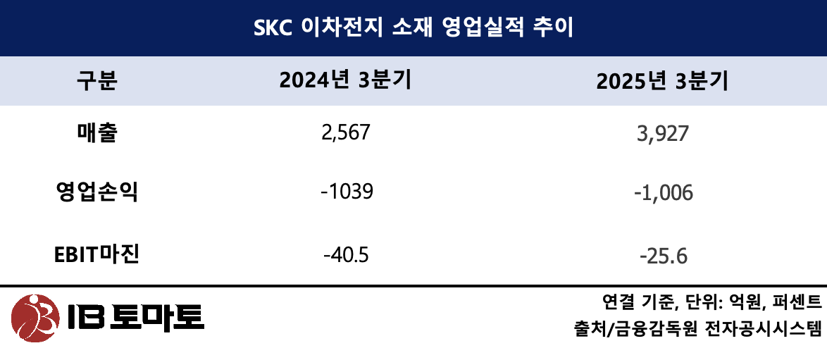 이에 대해 SKC 관계자는 <IB토마토>와의 통화에서 “일부 사업부 매각은 수익성 악화 때문이라기보다는 비주력 사업 정리 차원에서 진행된 작업”이라며 확대해석을 경계했다. 흑자전환 시점에 대해서는 "말레이시아 공장 가동률을 높이고 북미 ESS 수요 증가 등에 따라 이차전지 소재 부문 실적을 개선될 것으로 보인다"라며 "인공지능(AI)과 맞물려 글라스 기판 등 신사업도 상업화 절차가 차질 없이 진행되고 있어 중장기적인 기업가치 극대화 작업에 집중하고 있다"라고 설명했다.