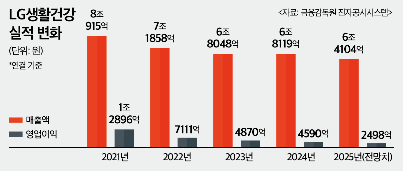 LG생활건강은 지난 2021년 매출 8조원을 기록한 이후 중국 내 코로나19 재확산으로 인한 소비 감소와 자국 제품 소비 경향이 확대되면서 2022년 7조 1858억원, 2023년 6조 8048억원으로 매년 역성장했다.